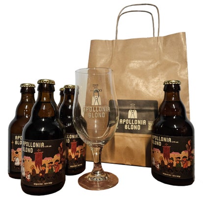 Geschenkzakje met 1 glas en 5 flesjes Apollonia Blond